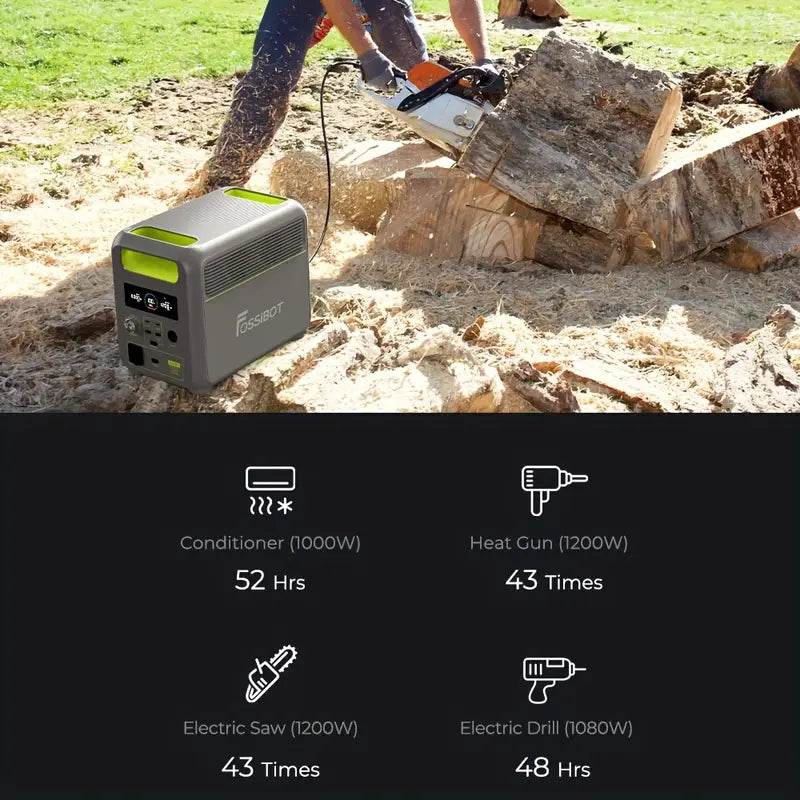 Centrale Électrique Portable FOSSiBOT F1200, Générateur Solaire LiFePO4 de 1024Wh, avec 2 Boosts de Puissance de 1200W et Sortie AC de 2400W, Type C de 100W, Adaptée pour les Voyages, le Camping et l'Usage Domestique
